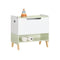 Moderní design dětské knihovny v světle šedé a přírodní barvě se perfektně hodí k jakémukoli dekoru. Udrží dětský pokoj pěkně organizovaný.