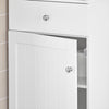 Má tři otevřené police, zásuvku a dvě další police s dvířky ve spodní části – nabízí dostatek prostoru pro koupelnové předměty.