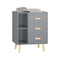 Noční stolek má 2 otevřené přihrádky a 1 zásuvku, aby byla zachována funkčnost a soukromí.
