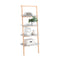 2 police jsou vyrobeny z vysoce kvalitního MDF s šedým lakem. Nohy jsou vyrobeny z masivního bukového dřeva, pevného a odolného. Tenká kovová deska na zadní straně každé police zabraňuje pádu předmětů.