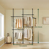 [STABILNÍ & FLEXIBILNÍ] Pevný kovový rám unese až 65 kg a slouží jako spolehlivá šatní tyč. Nastavitelná šířka (124–226 cm) a výška (200–295 cm) se snadno přizpůsobí různým dispozicím místnosti.