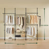 [VŠESTRANNÝ TELESKOPICKÝ SYSTÉM VĚŠÁKŮ NA ŠATY] Se 4 nastavitelnými tyčemi, 5 šatními tyčemi (z nichž 4 jsou výsuvné) a 2 koši si můžete vytvořit přizpůsobitelnou otevřenou šatní skříň. Ideální jako robustní šatní tyč do ložnic nebo šaten bez trvalé instalace.