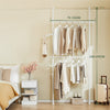 [VŠESTRANNÝ TELESKOPICKÝ SYSTÉM VĚŠÁKŮ] Obsahuje 2 nastavitelné tyče a 2 závěsné lišty, což vám umožní vytvořit přizpůsobitelnou otevřenou šatní skříň. Ideální jako odolný věšák do ložnic nebo šatních skříní bez nutnosti trvalé instalace.