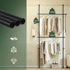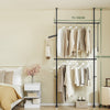 [UNIVERZÁLNÍ TELESKOPICKÝ ŠATNÍ SYSTÉM] Díky 2 nastavitelným teleskopickým tyčím a 2 šatním tyčím vytvoříte individuálně přizpůsobený otevřený šatník / stojan na oblečení – ideální do ložnice nebo šatny, bez pevné montáže.