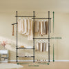 [VŠESTRANNÝ TELESKOPICKÝ SYSTÉM] Se 3 vertikálními teleskopickými tyčemi, 3 ramínky na oblečení, 2 úložnými policemi a bočním háčkem – pro individuálně přizpůsobitelnou otevřenou šatní skříň. Ideální do ložnic nebo vestaveb šatních skříní bez nutnosti pevné instalace.