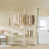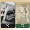 [ODOLNÁ KONSTRUKCE A FLEXIBILNÍ POUŽITÍ] Pevný kovový rám unese až 45 kg a slouží jako spolehlivá oděvní tyč. Nastavitelná šířka (147–198 cm) a výška (200–285 cm) se snadno přizpůsobí jakémukoli prostorovému uspořádání